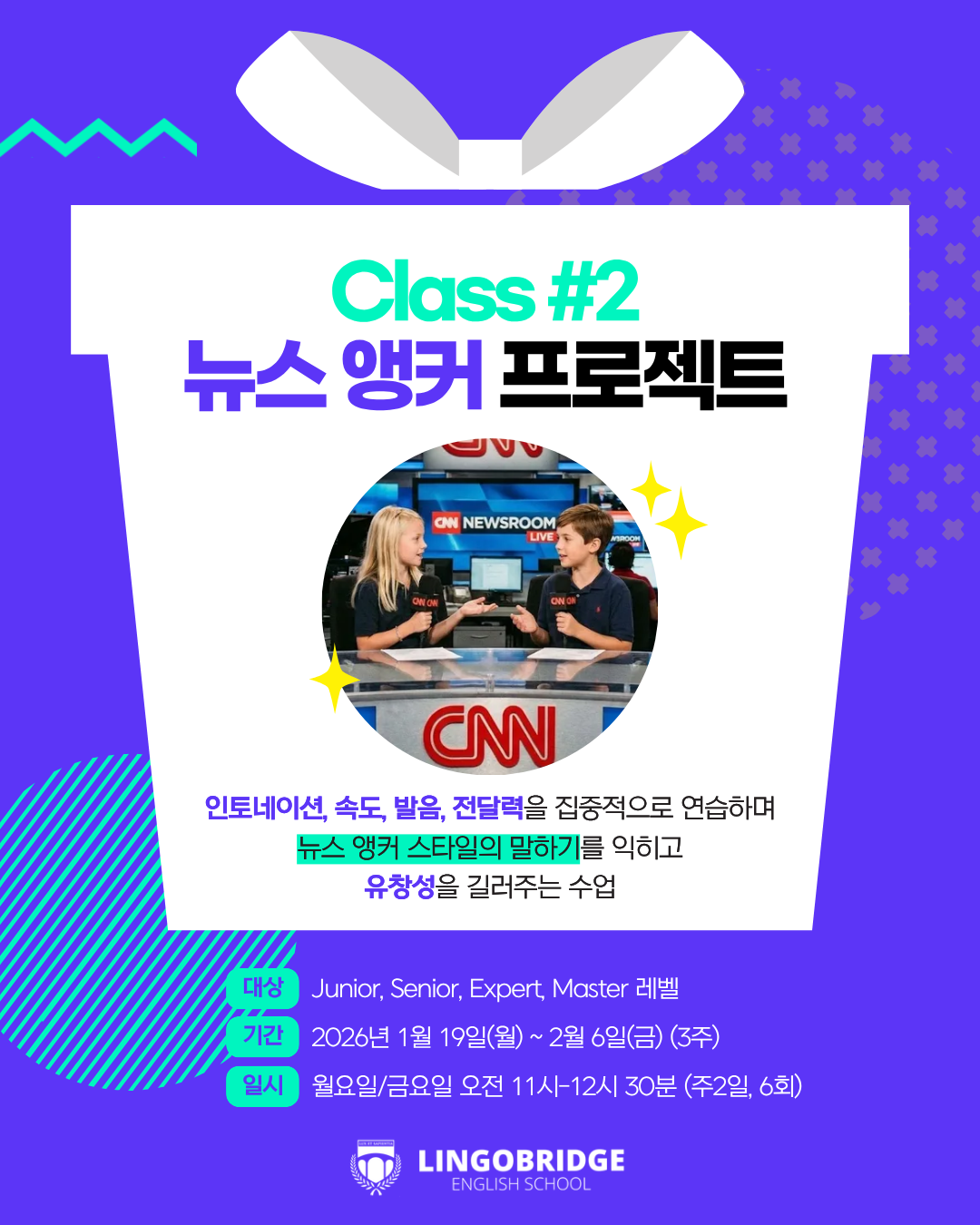- 카톡 채널 : “링고브릿지 어학원” 검색