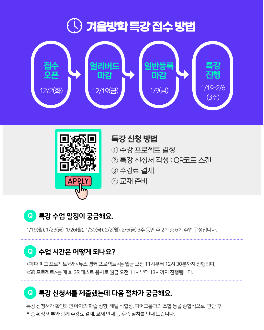 2026 겨울 방학 특강 개설